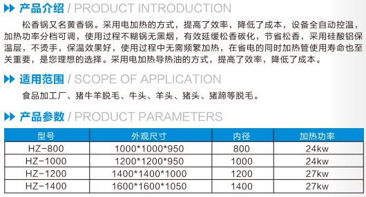 松香鍋又名黃香鍋,采用電加熱的方式,提高了效率,降低了成本,設(shè)備全自動控溫,加熱功率分檔可調(diào),使用過程不糊鍋無黑煙。
